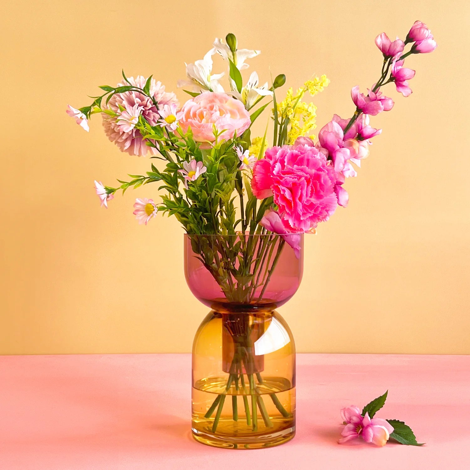 Constructed from durable Soda Lime Glass, the Cloudnola Flip Glass Vases combine modern design with practicality. Featuring two options - a wide opening for bouquets or a narrow side for single stems - these hand-blown vases can also double as candle holders or avocado vases. Available in multiple sizes, they make a sophisticated and multifunctional centerpiece for any home decor.