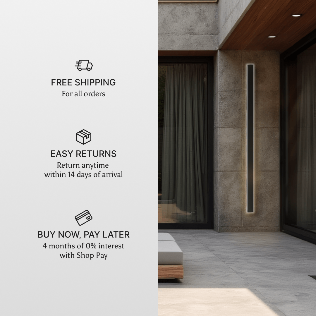- Sculptural Presence: A sleek, elongated body that adds drama and dimension to any wall — day or night.