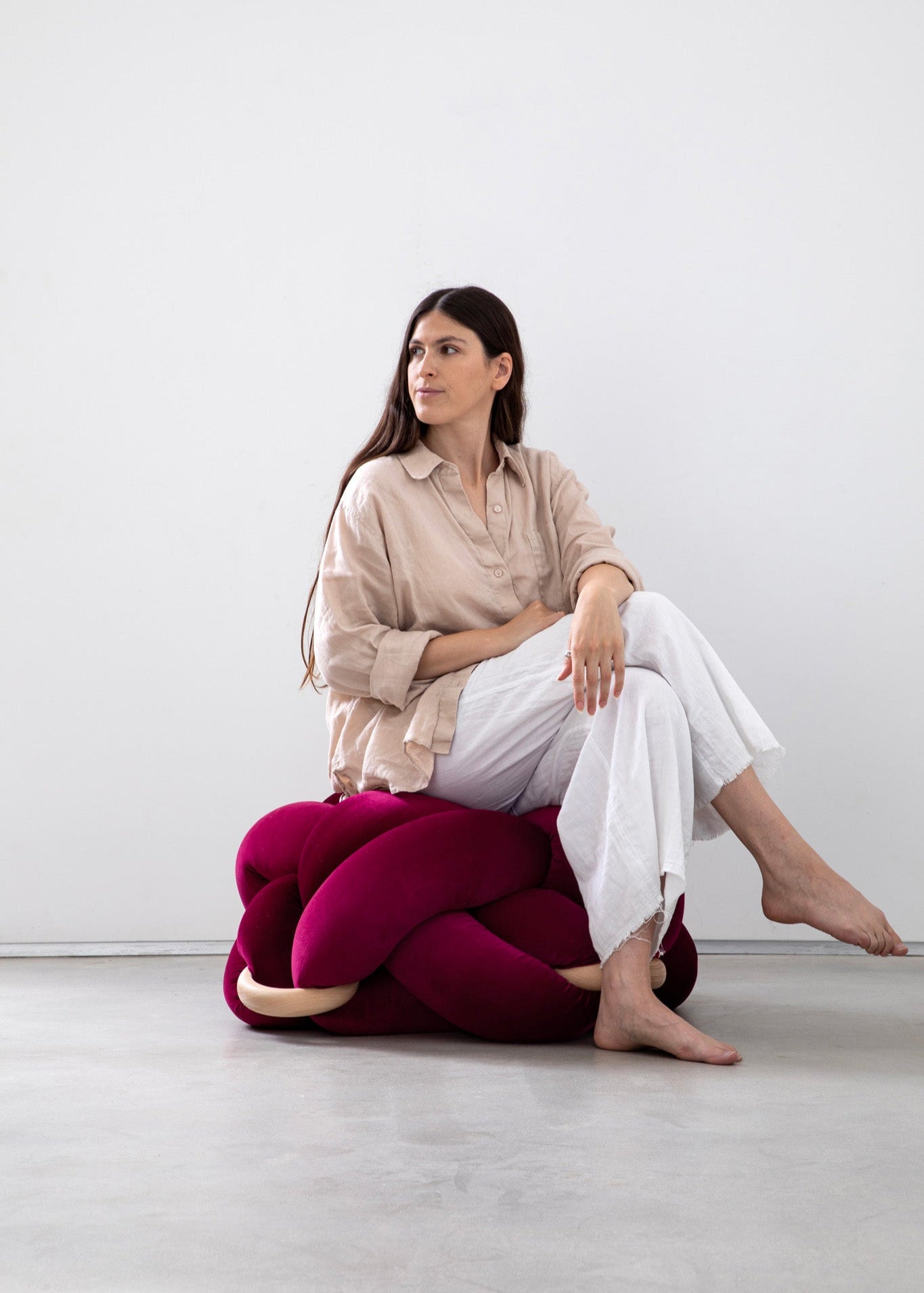 This burgundy ottoman merges sculptural elegance with practical utility, offering a distinctive seating solution that commands attention. Its artistic knot design functions as both a functional accent and a statement piece, seamlessly adapting to various interior spaces. Whether you need additional seating or a striking focal point for an underutilized corner, this ottoman delivers sophisticated style without compromising comfort. The thoughtful construction ensures it becomes a memorable design element that guests will appreciate for its refined aesthetic and welcoming functionality.