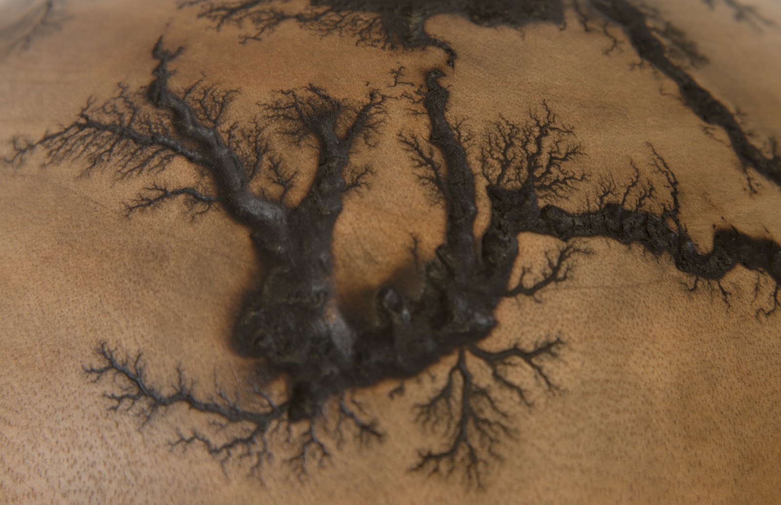 The Lightning Round Short-Neck Vase, part of the Lightning Collection featuring various shapes, is expertly carved from natural solid mango wood. The intricate fractal design is created through the use of liquid material and two electrodes, paying tribute to the wood's DNA. These decorative vessels boast striking lightning patterns, adding organic texture to any space. Versatile and modern, they make a stunning centerpiece for a tabletop or an accent on a shelf. The Phillips Collection offers several shapes in vases and bottles, all embodying their signature style of modern organic design. Please note that due to the natural material, each piece may vary in color and wood grain, giving it a unique character. However, please refrain from using this piece outdoors
