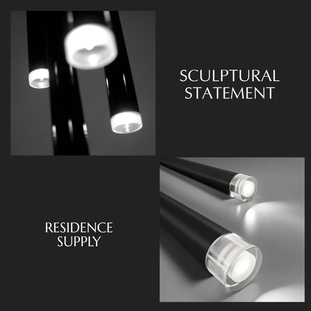 - Features a minimalist and contemporary design with slim, elongated light fixtures that create a striking visual impact.