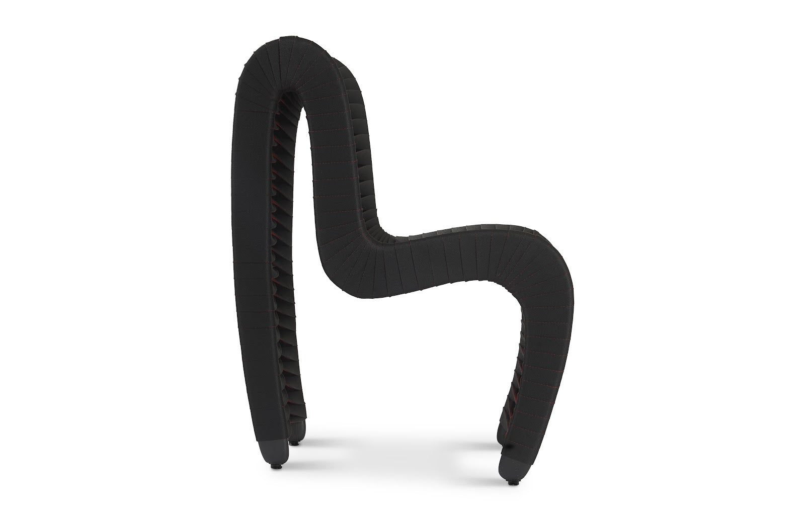 The Seat Belt Dining Chair in Black/Red is part of a collection of contemporary seating designed by the renowned Nuttapong Charoenkitivarakorn. The inspiration for this chair came from the intricate patterns seen in the fabric spools of a seat belt factory. Recognizable by its woven back and sleek profile, the chair features a wooden frame with metal reinforcement. It comes in both monochromatic and two-toned versions, with a variety of color options. For larger orders of 16 or more, custom color matching is available. This chair embodies the modern organic style that the Phillips Collection is known for.