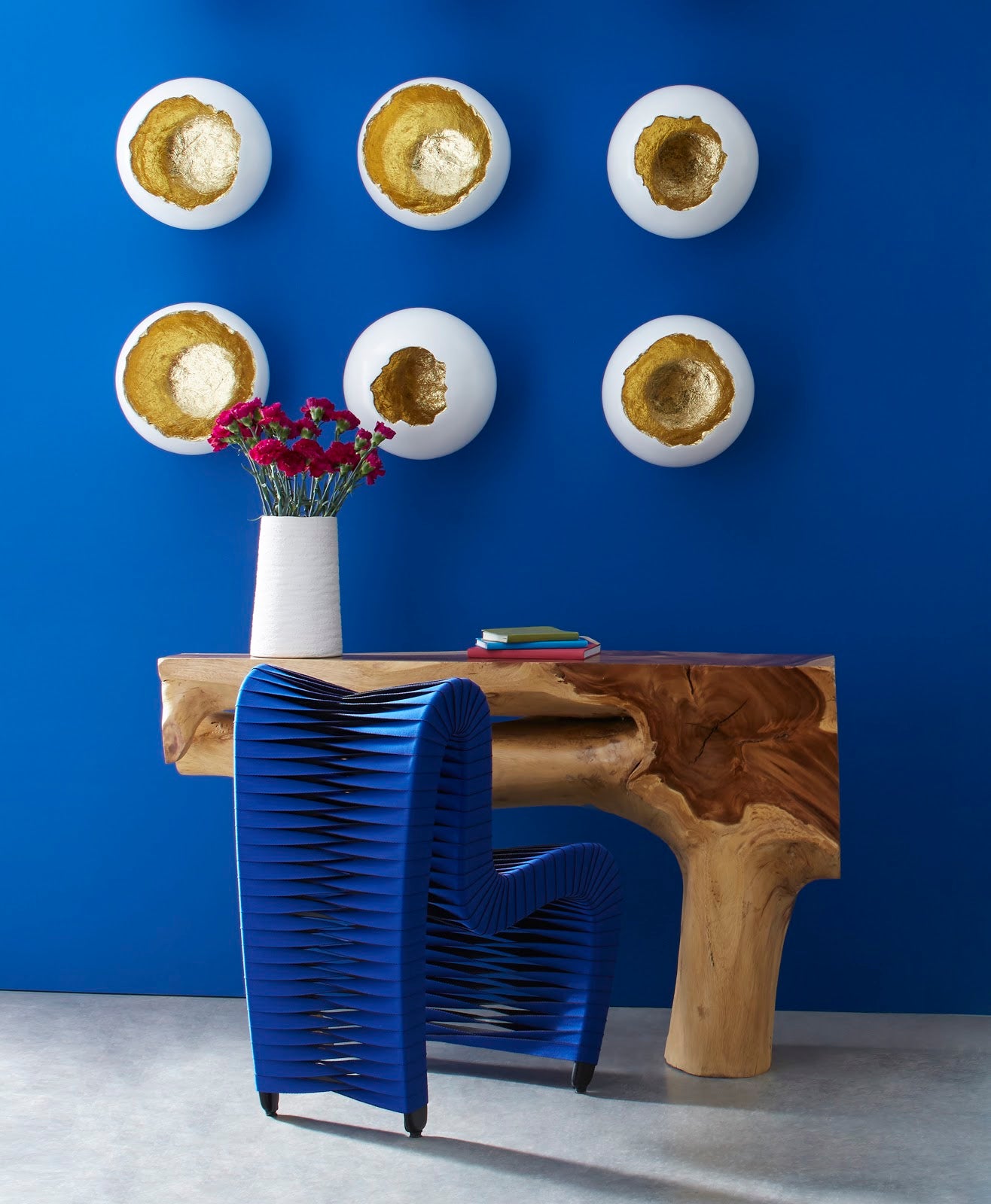 The Seat Belt Dining Chair in Blue/Black is just one of the many modern seating options crafted by acclaimed Thai designer Nuttapong Charoenkitivarakorn. Inspired by the patterns of fabric spools found in seat belt factories, these chairs are easily identifiable by their braided backs and elegant profiles. The straps are carefully woven onto a wooden frame reinforced with metal, creating both monochromatic and two-toned versions in a variety of colors. Quantities of 16 or more can be customized to match your desired color palette. This collection exemplifies the modern and organic approach of the Phillips Collection.