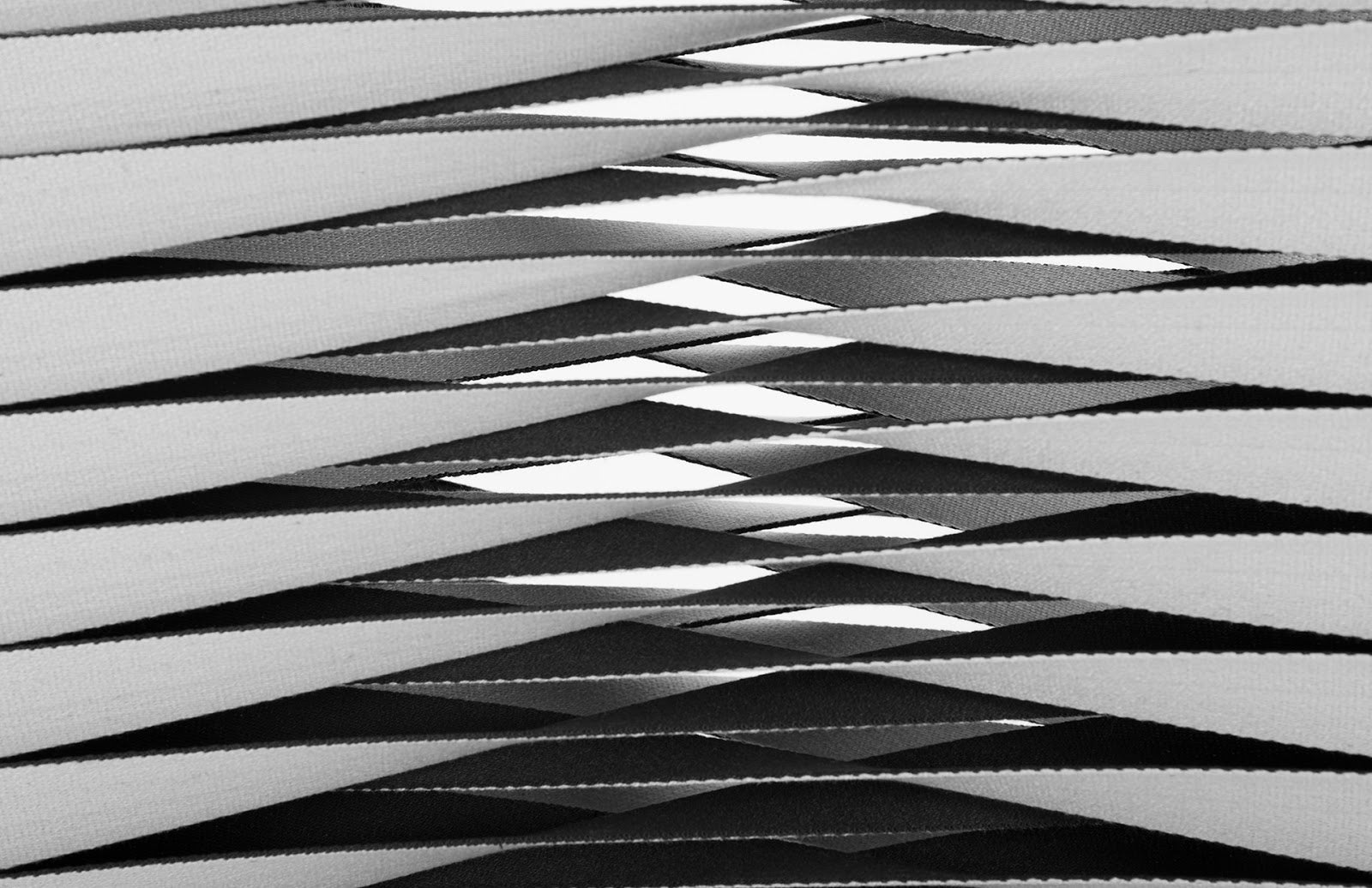 The contemporary Seat Belt Highback Gray Black Dining Chair is part of a collection designed by award-winning Thai designer Nuttapong Charoenkitivarakorn. Inspired by a seat belt factory, the chair features a unique braided back and stiletto profile. The wooden frame is reinforced with metal and the straps are available in monochromatic and two-toned versions, with the option for custom color matching for quantities of 16 or more. This collection, reflecting the ethos of the Phillips Collection, embodies a modern organic style