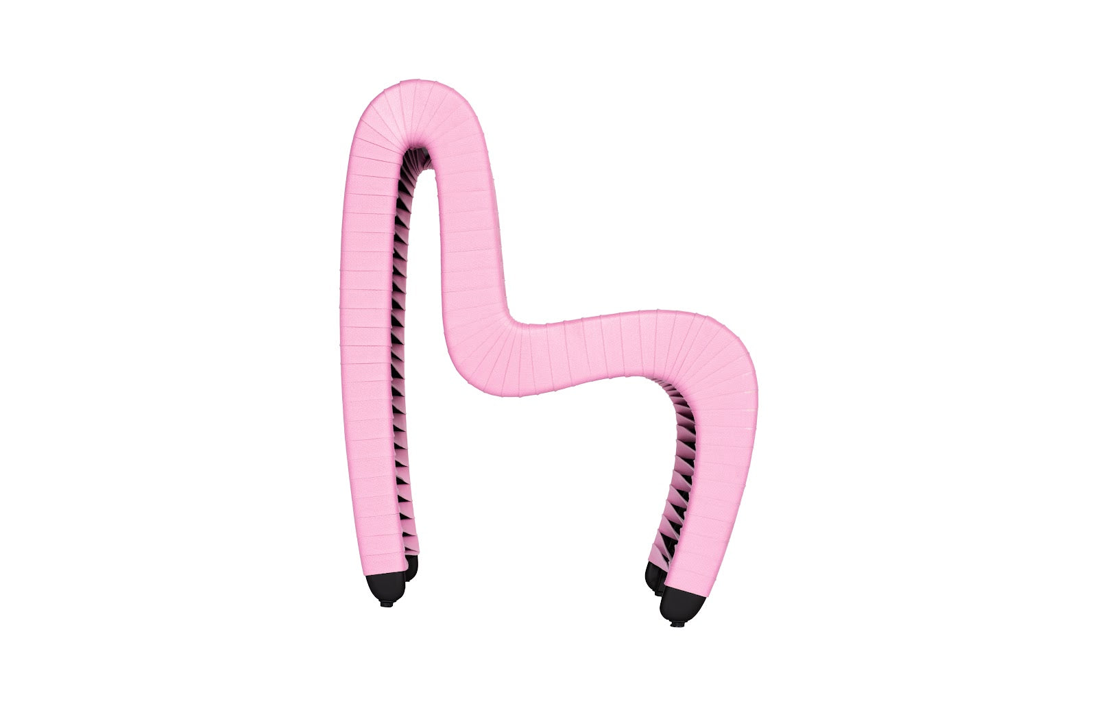 The Seat Belt Dining Chair in Pink/White is a unique addition to Thai designer Nuttapong Charoenkitivarakorn's contemporary seating collection. Inspired by the intricate spools of fabric found in seat belt factories, these chairs feature a distinctive braided back and sleek stiletto design. The sturdy wooden frame is reinforced with metal and comes in monochromatic or two-toned variations, offering a variety of color options.