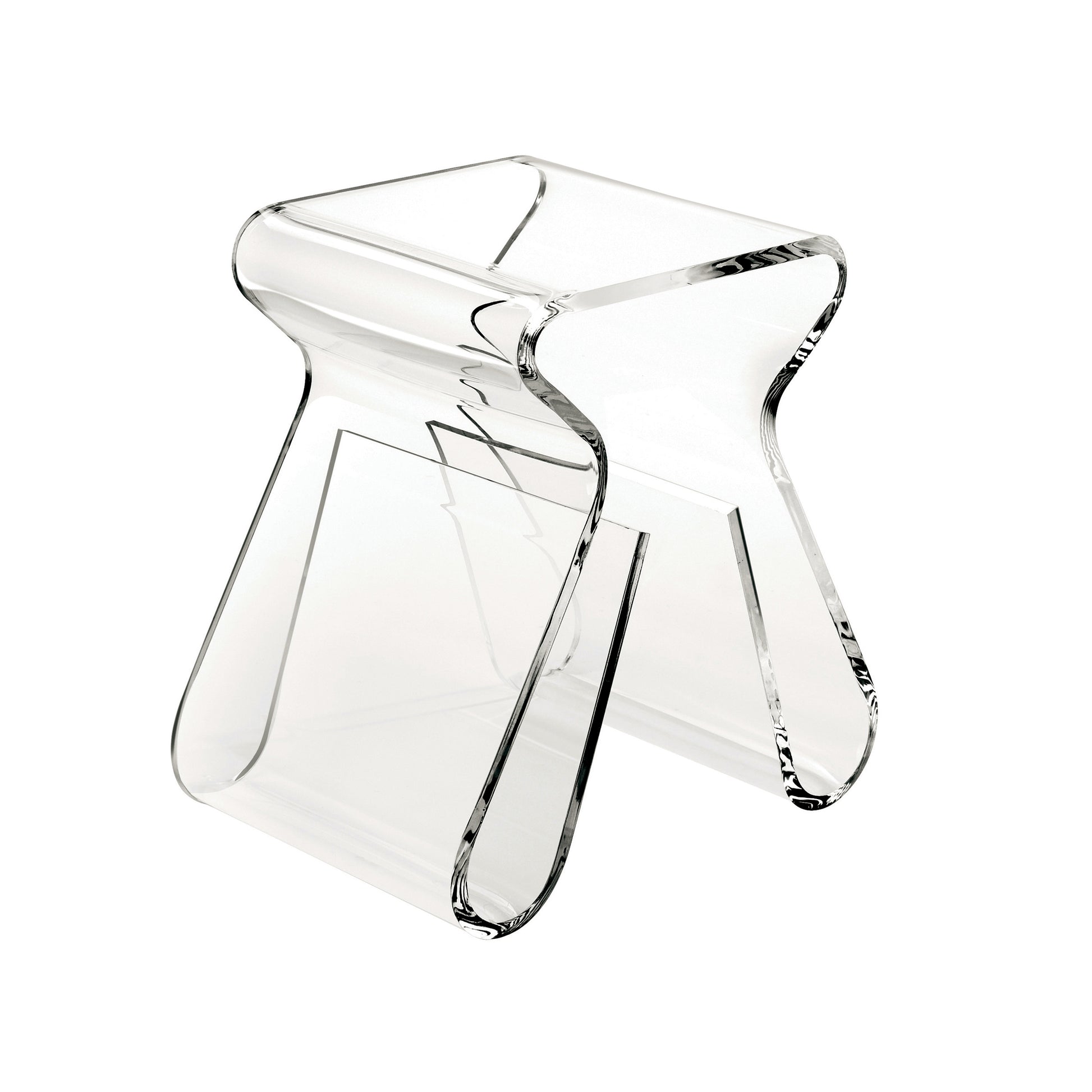 The acrylic Magino Stool is perfect as a nightstand, end table or stool with its integrated storage to hold magazines, books or records. Its curved legs and transparent body makes for a chic and simple versatile piece of furniture. Measuring, 16.5 x 11.5 x 17 inches (42 x 29 x 43 cm) it functions as a stool, side table and a magazine rack, without taking up tons of space. The acrylic is thick at 13 mm, lending to Magino’s graphic lines and durability (this piece is shatter-proof). Put the finishing touches on your space with this eye-catching piece of furniture. Max weight capacity of 200lbs. (90 kg).